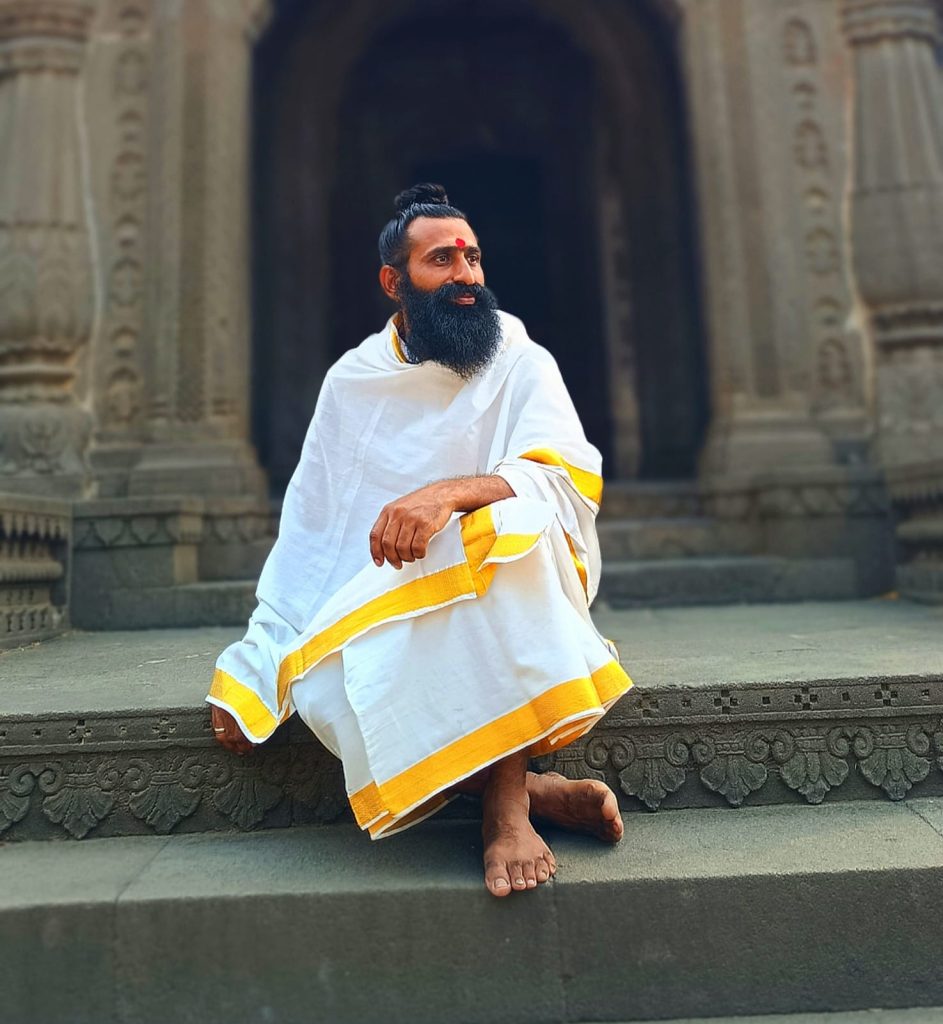 Swamiji is doing worship of Shri Dattatrey ( श्री दत्तात्रेय भगवान), Shri Bhagwati Rajeshwari Mahatripursundari (मां भगवती राजराजेश्वरी महात्रिपुरसुंदरी )and Ma Narmada devi ji (मां नर्मदा जी).